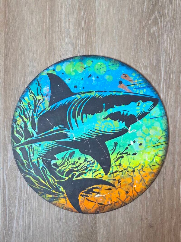 Œuvres originales réalisées sur un rond MDF en bois, puis vernies brillant.