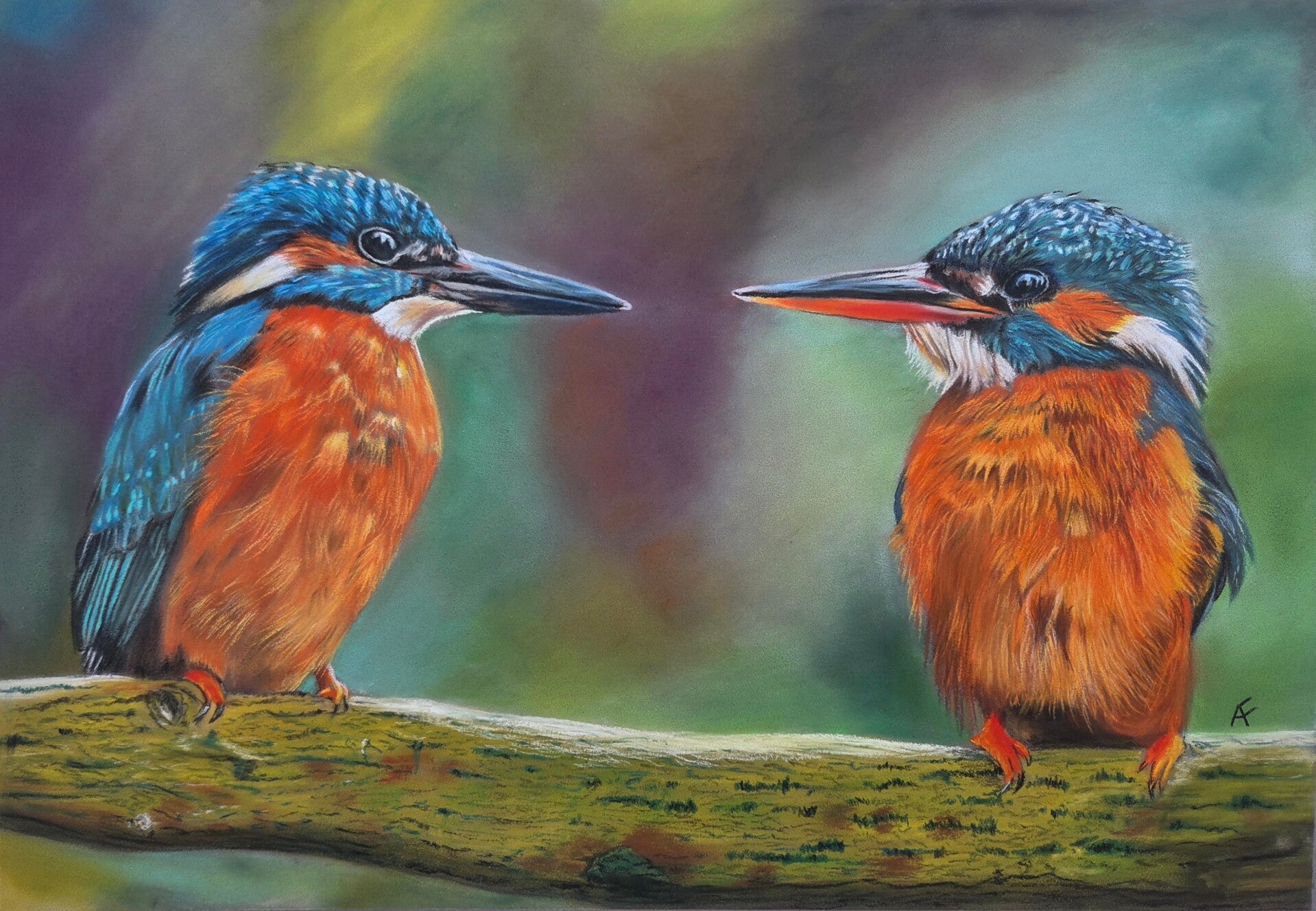 Pastel sec sur papier Pastelmat, réalisé avec des bâtonnets pastel tendre Faber-Castell et Stabilo.