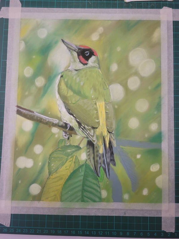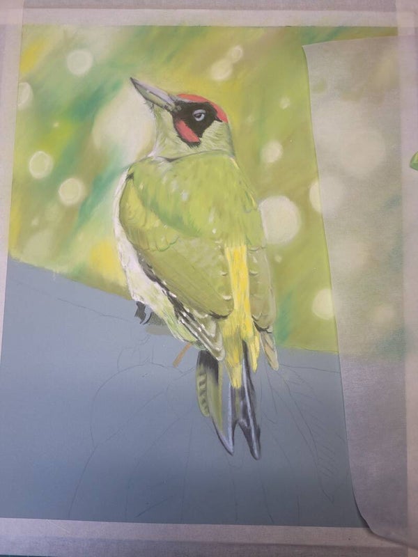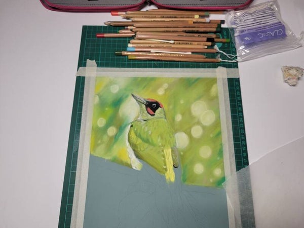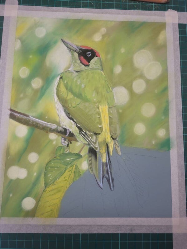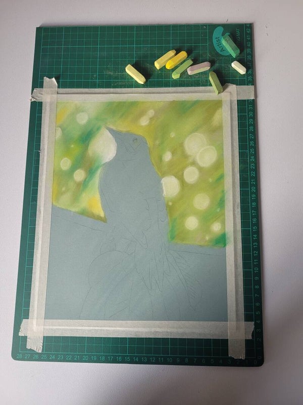 Autour du dessin, il y a un bord de 1 cm de couleur papier bleu gris.