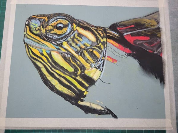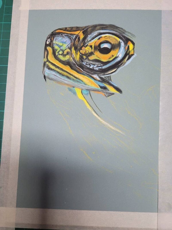 Pastel sec sur papier pastelmat fait avec des crayons pastel sec et des bâtonnets de pastel tendre.