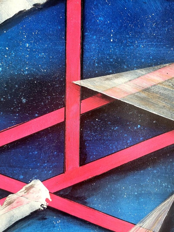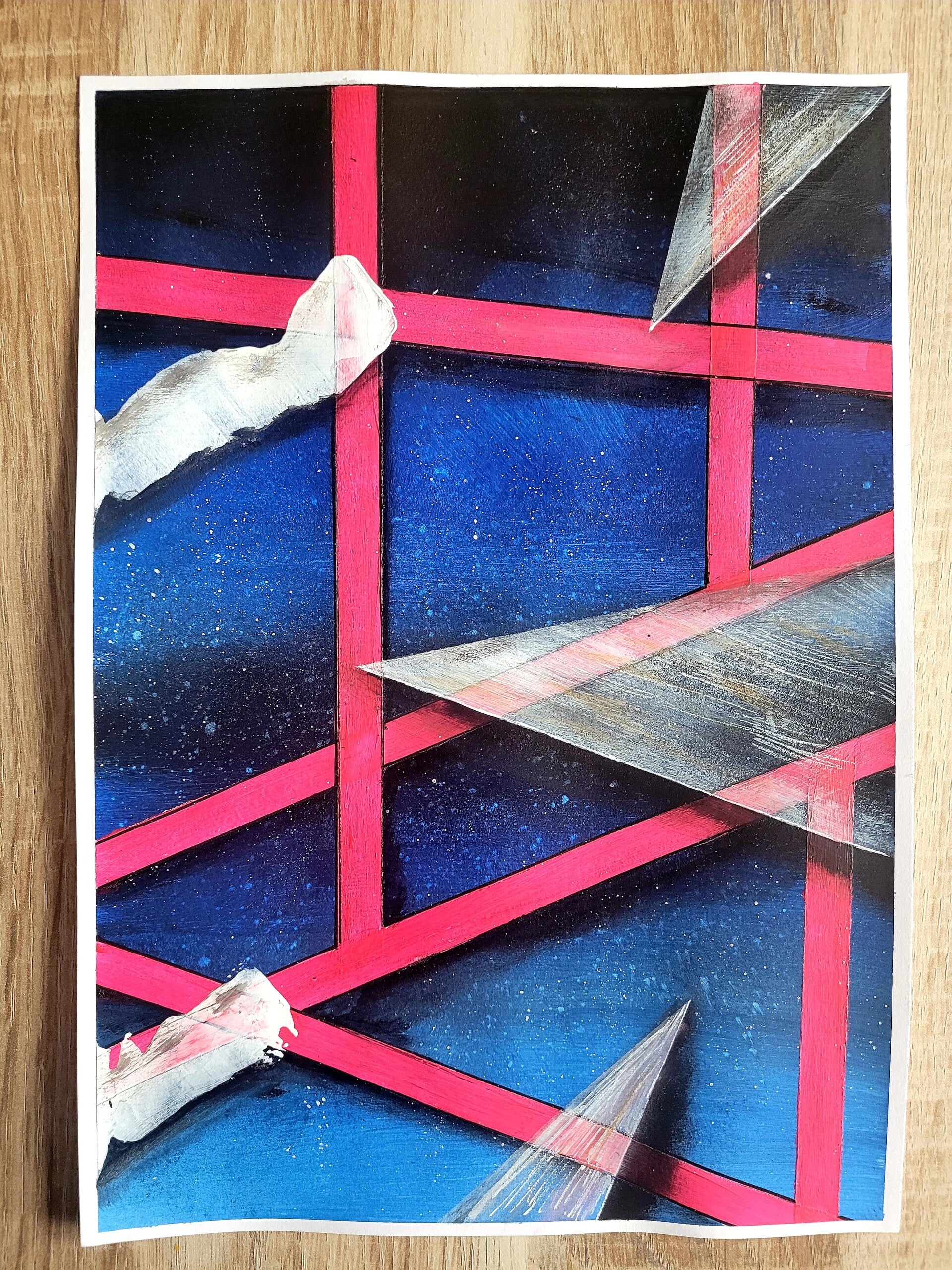 Médium : acrylique bleu, blanc et fluo rose noir , plus posca .