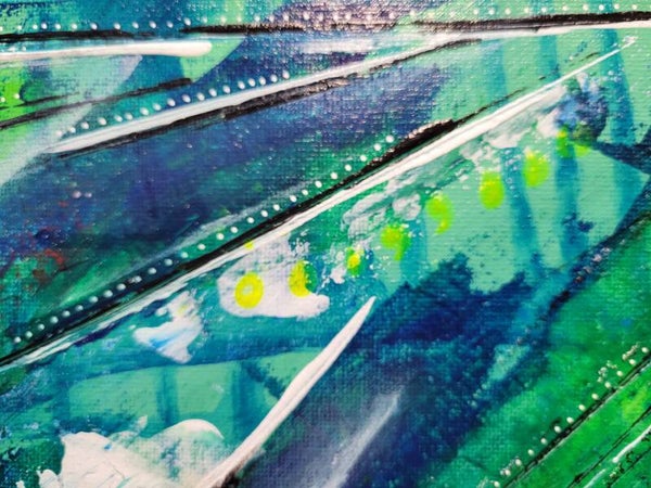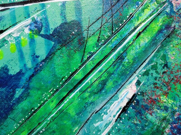 Utilisation de techniques mixtes à la peinture acrylique, mes propres mélanges plus Posca et acrylique fluo jaune.