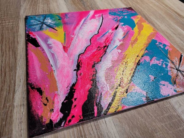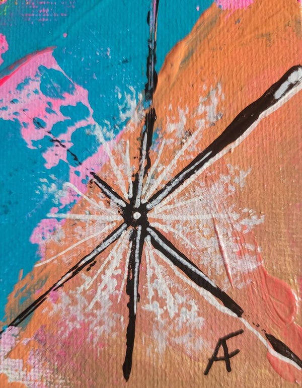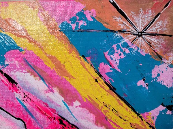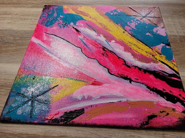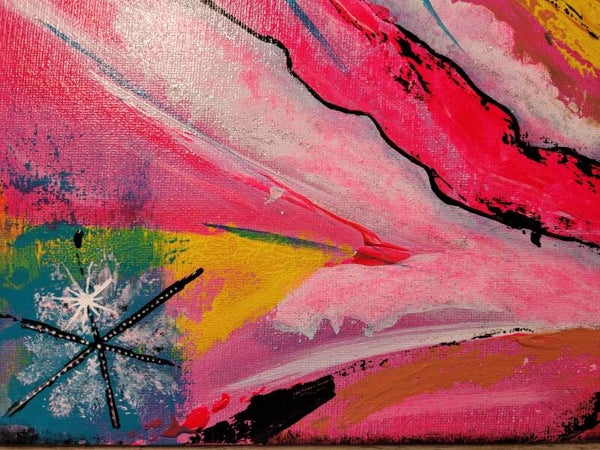 Utilisation de techniques mixtes à la peinture acrylique, de mes propres mélanges de couleurs, plus Posca.