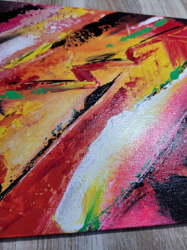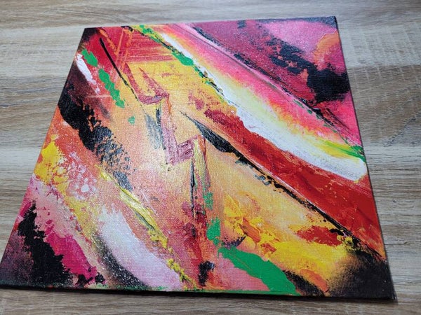 Utilisation de techniques mixtes à la peinture acrylique, avec mes propres mélanges de couleurs.