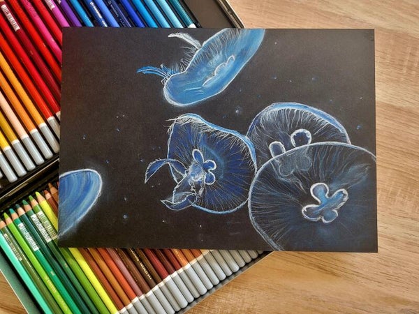 Crayon pastel sec Stabilo sur papier noir Clairefontaine