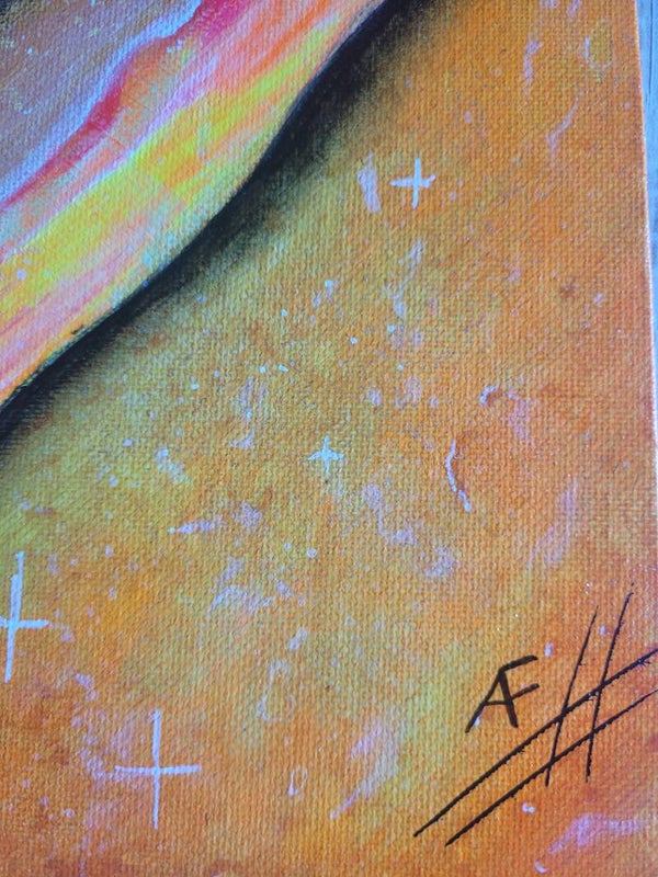 Médium : acrylique, blanc, jaune, rose,orange fluo noir plus posca .